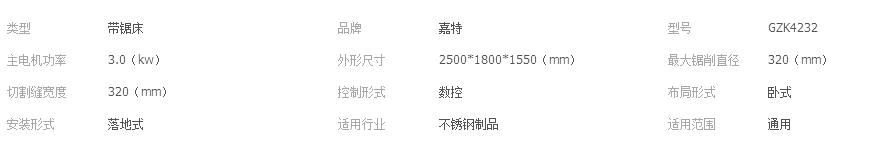 該機型的主要特點是:雙柱結構;液壓虎鉗夾緊;液壓控制鋸切進給;導向頭結構合理,延長鋸條的使用壽命;根據(jù)要求可定做液壓張緊鋸條